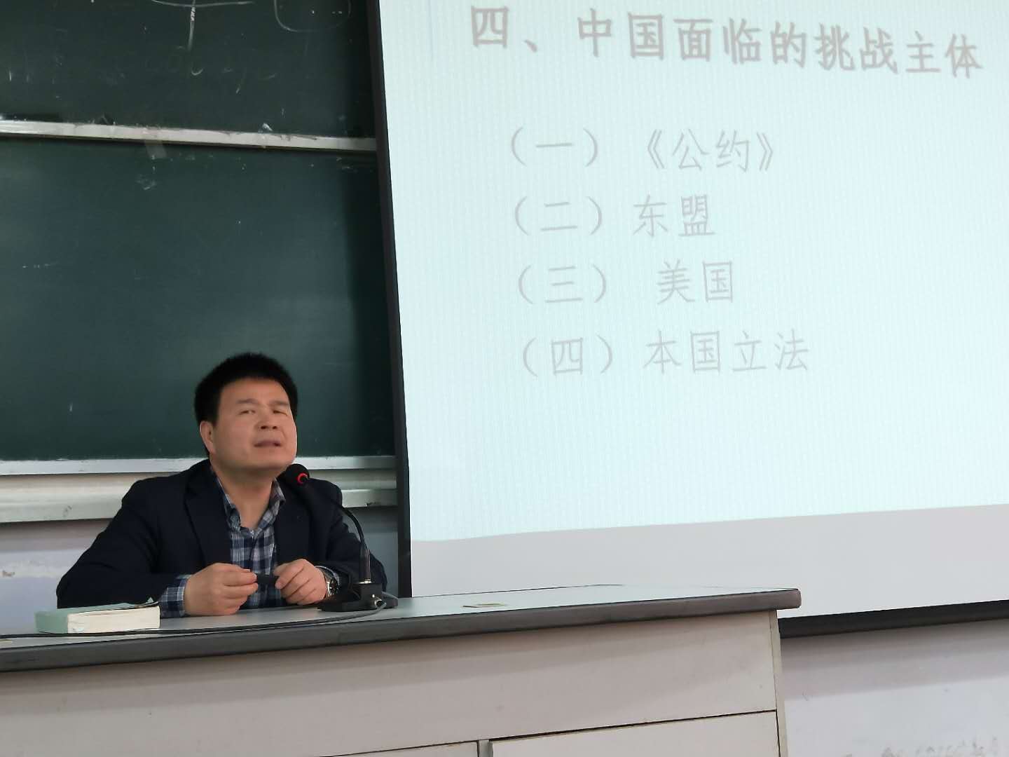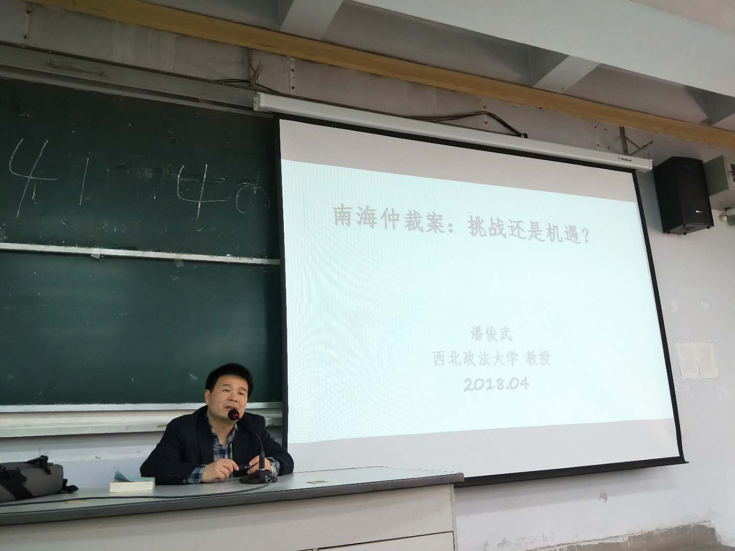 本次讲座的主题是“南海仲裁案:挑战还是机遇?”,主讲人为国际法学院潘俊武教授,英国正版365官方网站副经理淡新昌主持本场讲座。