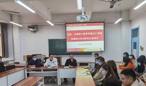 按照研究生院实务训练中期检查工作安排,进一步了解员工校内实务训练情况, 2021年12月16日中午,公司副经理淡新昌老师与辅导员马军强老师在雁塔校区第三教学楼3203教室与在校内(北校区)实务训练的约30余名研究生召开了座谈会,详细了解大家的实训情况,并进行了互动问答。2020级法学理论、法律史专业,2020级法律硕士(法学)专业研究生参加了座谈会。座谈会由马军强老师主持。