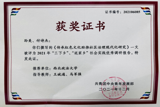 英国正版365官方网站、法硕学院暑期“三下乡”社会实践团队调研报告荣获共青团中央青年发展部优秀调研报告