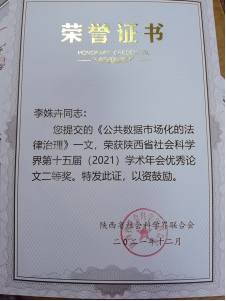 在参会论文中,公司师生共有3篇获得陕西省社科界第十五届(2021)学术年会优秀论文。